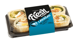 Lavašas su rūkyta lašiša ir salotomis